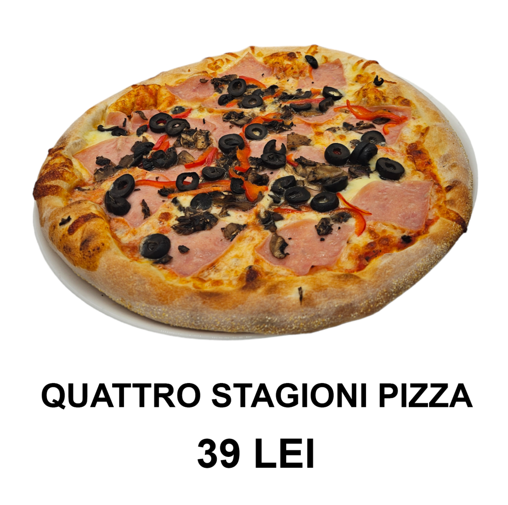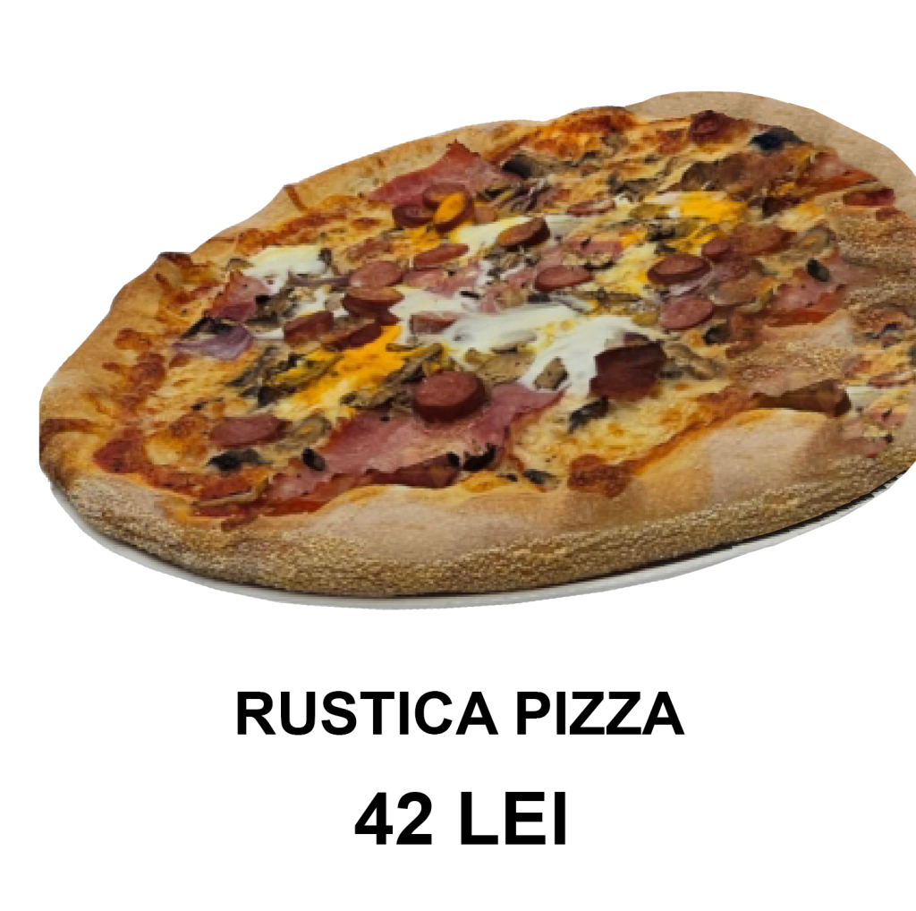 sos de roșii, mozzarella, salam, bacon, șuncă, ardei, ciuperci, măsline, ceapă – 32 CM/ 640g