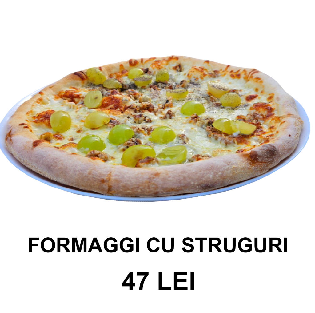 sos alb, mozzarella, gorgonzola, parmezan, miez de nucă, piper, struguri – 32 CM/ 500g